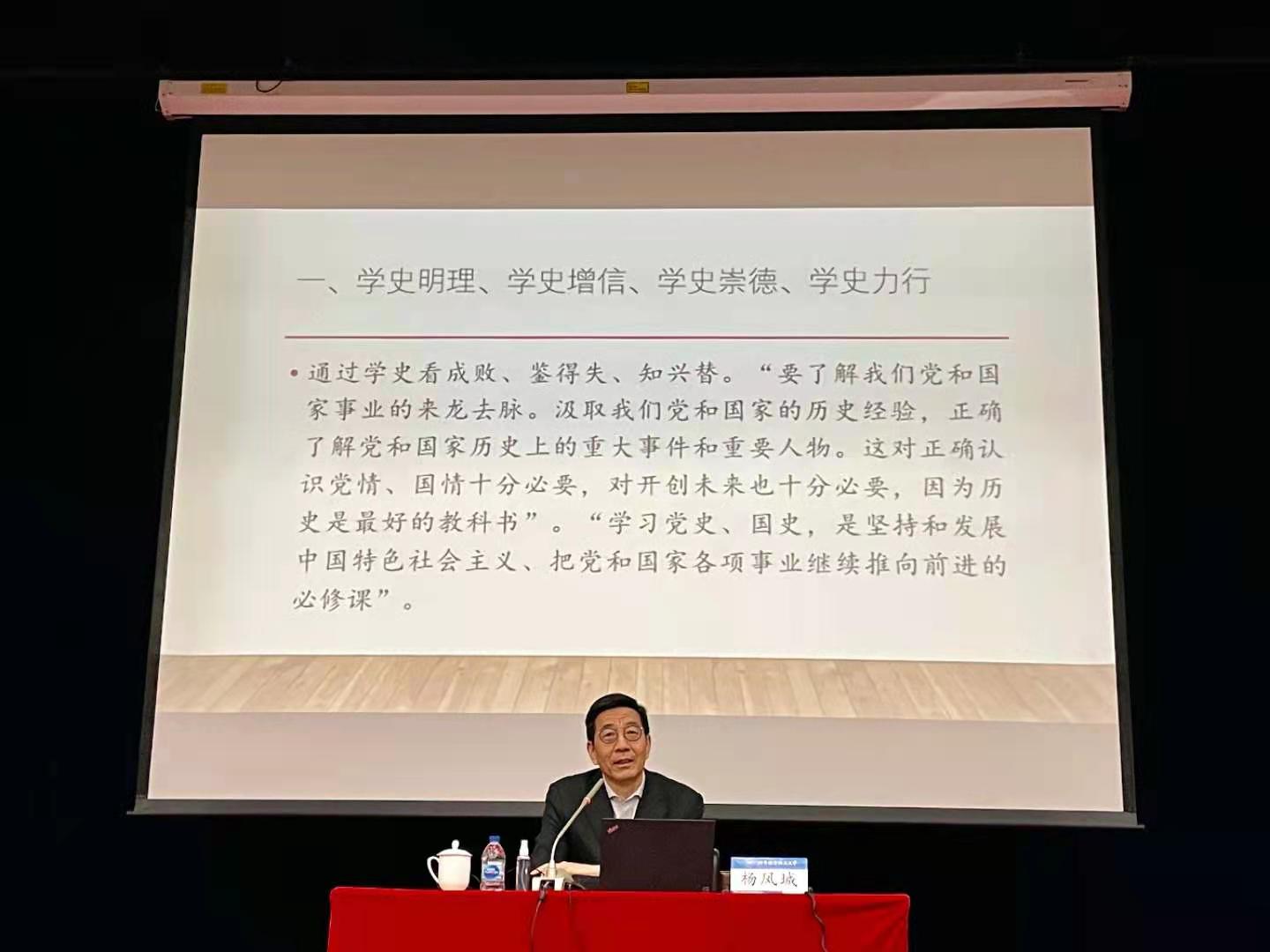3月31日,我院邀请党史学习教育中央宣讲团成员、中国人民大学马克思主义学院杨凤城教授走进我校思政课堂,讲授“习近平党史观与党史学习教育”专题报告。我校2020级博士生、2020级本科生、青马班学员、马克思主义部分教师和研究生分别在学术交流中心现场和15个教室直播分会场同步聆听报告。报告由我校党委副书记程波主持。