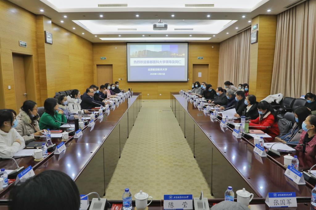 近日,首都医科大学党委书记呼文亮、党委副书记刘芳、马院部分教师代表等一行来我校调研交流,探讨马克思主义学院建设发展经验,学习北航“思政课程与课程思政同向同行”的先进做法。校党委书记曹淑敏、党委副书记程波参加调研活动。我校马克思主义学院院长赵义良、分党委书记高宁及部分教师代表陪同调研。